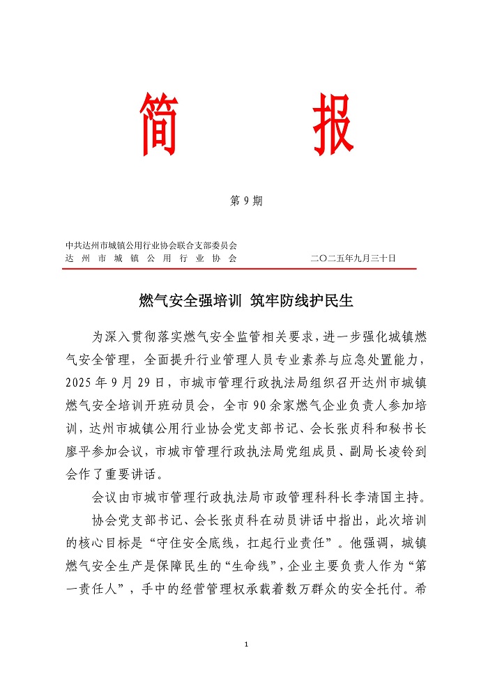 達(dá)州市城鎮(zhèn)公用行業(yè)協(xié)會(huì)2025年第九期簡(jiǎn)報(bào)
