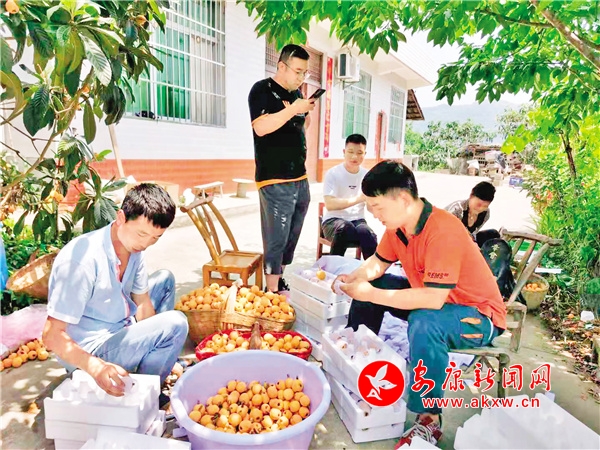 小哥告訴記者,他們公司于2015年開(kāi)始進(jìn)村攬收枇杷鮮果。每年這段時(shí)間更加派人手入村攬收,自己和同事每天8點(diǎn)就到村入戶,把事先準(zhǔn)備好的水果網(wǎng)套、泡沫保鮮箱、紙箱送到有訂單的村民家中。