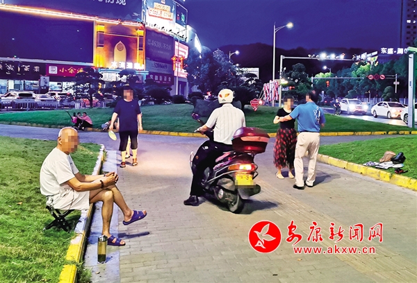 6月18日,有市民帶著孩子在安康城區(qū)西津漢江大橋(三橋)南頭街心綠地內玩耍,旁邊就是“小草微微笑 請您旁邊繞”的公益廣告牌(圖1)。不時還有摩托車、電動車從人行道經過(圖2),存在安全隱患。(記者 潘潤生 攝)