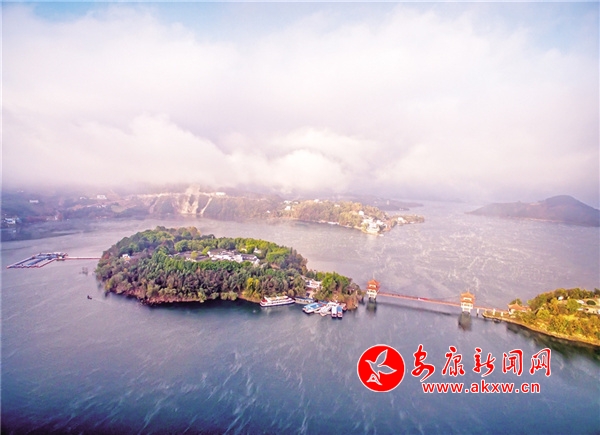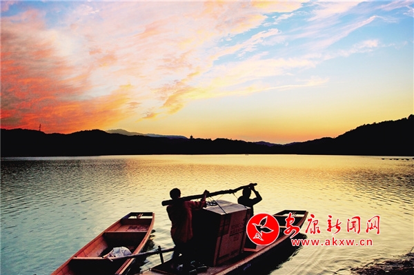 初冬的清晨,瀛湖風(fēng)姿綽約、曼妙無(wú)比。起初湖水像是受熱不均的沸水,這里一點(diǎn),那里一塊冒著熱騰騰的青煙,如絲如縷,在水面上輕盈地飄動(dòng)、游離、撕扯,如慵懶自在的白云,把天空、湖水襯托得更藍(lán)。漸漸地,煙嵐越來(lái)越濃,越來(lái)越多,像化不開(kāi)的乳汁,最后整個(gè)湖面煙波浩渺,小船和遠(yuǎn)山若隱若現(xiàn),似人間童話(huà)仙境。這樣的山圍繞著這樣的水,這樣的水倒映著這樣的山,再加上湖中帆影點(diǎn)點(diǎn),白鷺行行,小島林立,魚(yú)群結(jié)對(duì),有種人在畫(huà)中游的感覺(jué)。深冬,總會(huì)落一兩場(chǎng)雪。那雪,極富層次。山下,素雪輕薄覆蓋;山上銀裝素裹,玉潔冰清。湖水則咕嘟咕嘟冒著熱氣,白綠相配,分外醒目,似丹青妙手繪制的山水畫(huà),又似巧手繡娘精繡的刺繡,美輪美奐,惹人愛(ài)憐。