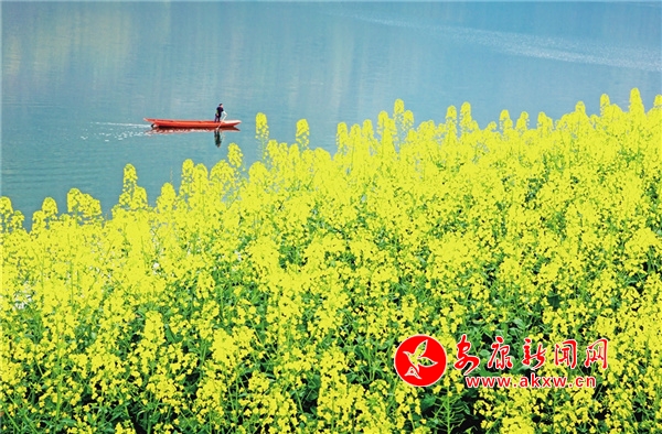 瀛湖的春天,立春很久才姍姍而來(lái)。春風(fēng)拂過(guò)山間林木,樹(shù)木爆芽吐綠。起初是一樹(shù)一樹(shù)的鵝黃,帶著幾分詩(shī)意。沒(méi)幾天,便是翡翠般的新綠,煥發(fā)著勃勃的生機(jī)。藍(lán)天麗日下,一池湖水碧波萬(wàn)頃,如一面巨大的鏡子鋪展在天地間。頭頂?shù)乃{(lán)天白云,四周的紅花綠樹(shù),全都靜臥湖底。魚(yú)兒開(kāi)始產(chǎn)子,孕育后代,來(lái)來(lái)往往的游船載來(lái)四面八方的游客,火了周邊的農(nóng)家樂(lè),鼓了村民的腰包。