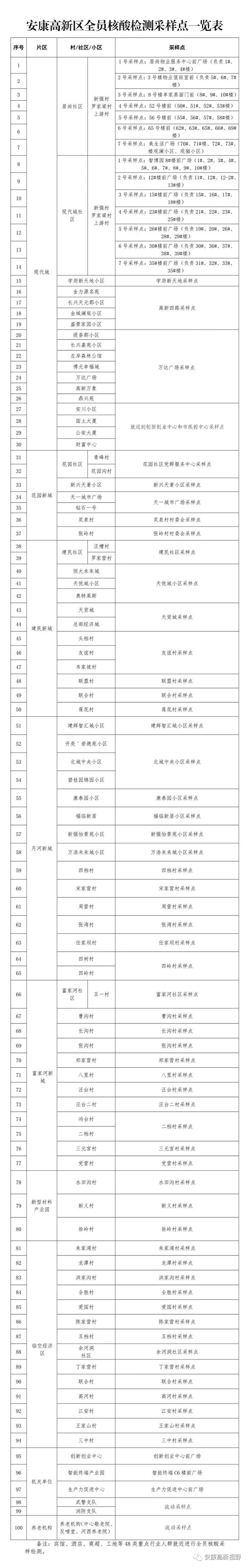 附件:安康高新區(qū)全員核酸檢測(cè)采樣點(diǎn)一覽表