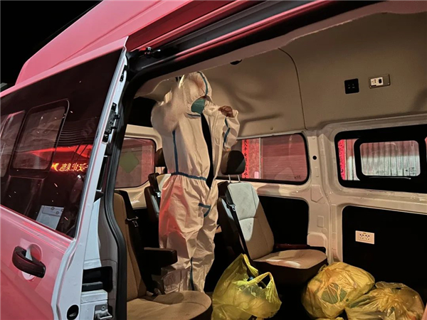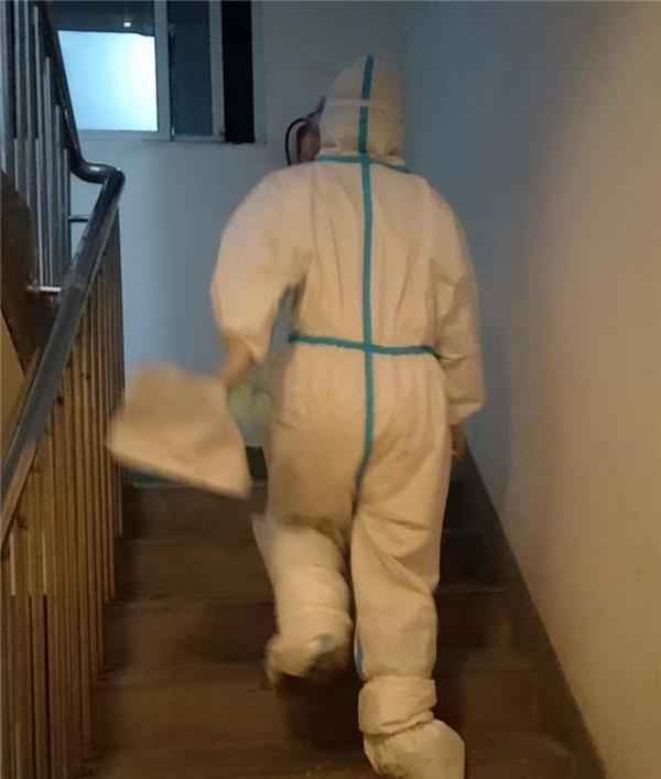 11月25日中午,忙完第一輪核酸采集,再接到流調通知單后,王康又立馬帶著他的“小伙伴”前往三里社區(qū)為居家隔離人員做核酸檢測,溝深路滑,因前幾日陰雨天氣路面濕滑,在上一處陡坡時,車輪瞬間開始側滑,但是時間緊迫只能一試再試,大概試了20余次,在村上壓路車的幫助下,又試了兩次車子終于緩緩啟動。喜悅之余他們就即刻趕往隔離群眾家中,“我們快一點,再快一點,就能讓等待的人少受一點冷”,這是“大白”們共同的心愿。