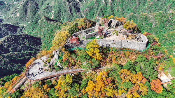 全勝寨位于我市嵐皋縣民主鎮(zhèn),是一個(gè)隱于群山、建于絕壁之上、保存完整的古山寨群落。古寨遺存的多處石砌城墻和戰(zhàn)壕錯(cuò)落有致,延綿數(shù)公里,為秦巴山區(qū)所罕見。據(jù)當(dāng)?shù)厥分居涊d,此寨始建于明末,是當(dāng)?shù)孛癖姙槎惚軕?zhàn)亂而建。因山寨抵御多次外來侵?jǐn)_,屢獲全勝,故名“全勝寨”。這里平均海拔1300至1500米,是陜西省第七批文物保護(hù)單位,也是目前我省保存較為完好、歷史戰(zhàn)績(jī)輝煌的寨堡,同時(shí)也是重要的革命歷史舊址。對(duì)于研究明、清、民國時(shí)期嵐皋歷史文化和寨堡建筑具有重要價(jià)值。(袁法 攝)