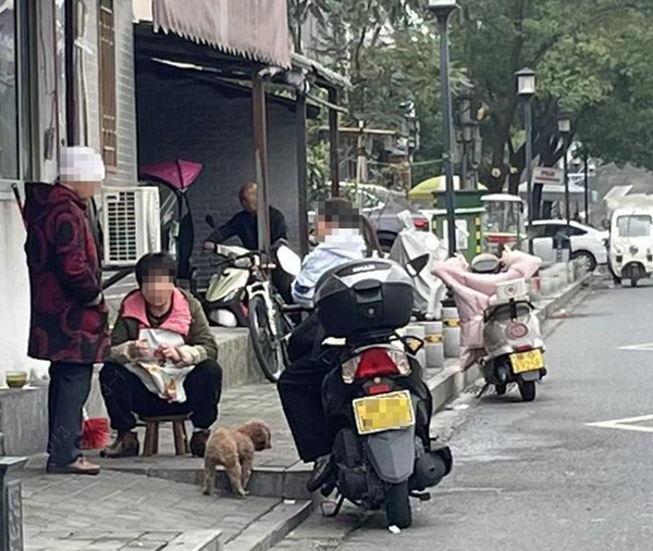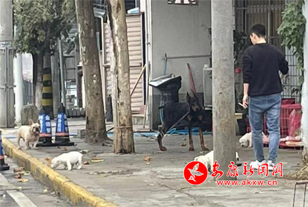 11月9日,在城區(qū)東內(nèi)環(huán)路住戶門前,有市民帶著狗未系繩和鄰居聊天,狗在門前隨意跑動(dòng)。(圖文/馬婷)