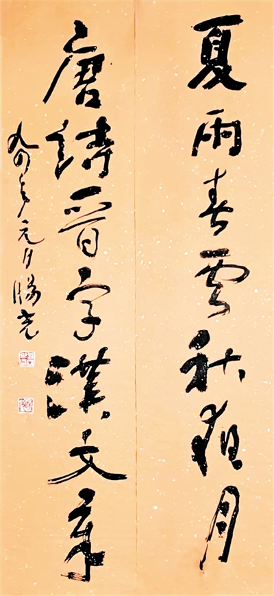 縱觀劉旸光先生的作品,其正楷筆致遒勁、骨肉停勻深諳晉唐書理;所做隸書,結(jié)體開張、筆意瀟灑、饒有“石門”的遺意;其草書氣機暢達、空靈疏朗、暗合明人意趣,而篆書則變化多端、垂腳舒展、顧盼自然,大有周秦風韻。在騰挪跌宕的線條構(gòu)筑的黑白空間,捕捉轉(zhuǎn)瞬即逝的靈感。他的作品意在筆先,胸有成竹,中側(cè)鋒并用信手揮灑,一氣呵成,筆墨酣暢、淋漓盡致,如入無人之境,觀賞先生作書簡直是超然于物外的享受。