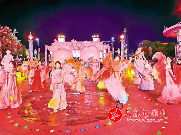 演職人員在漢城國(guó)際商業(yè)街排練節(jié)目,迎接即將到來(lái)的“五一”假期。記者 潘潤(rùn)生 攝?