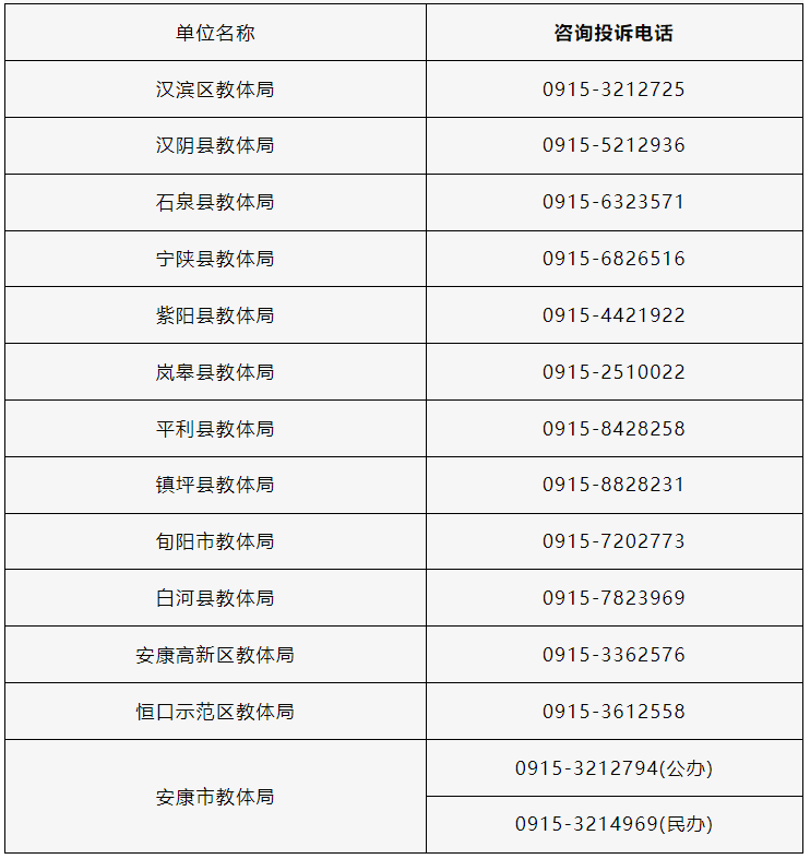 2.2024年安康市義務教育招生入學工作咨詢投訴電話