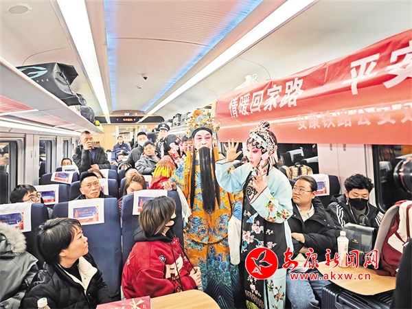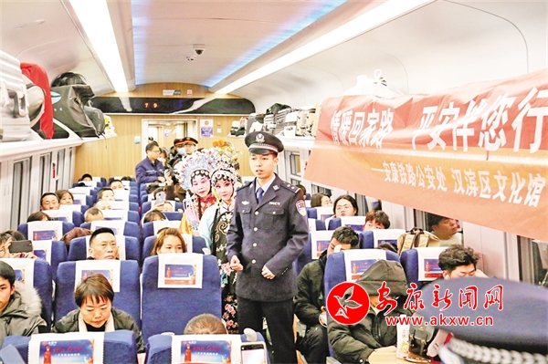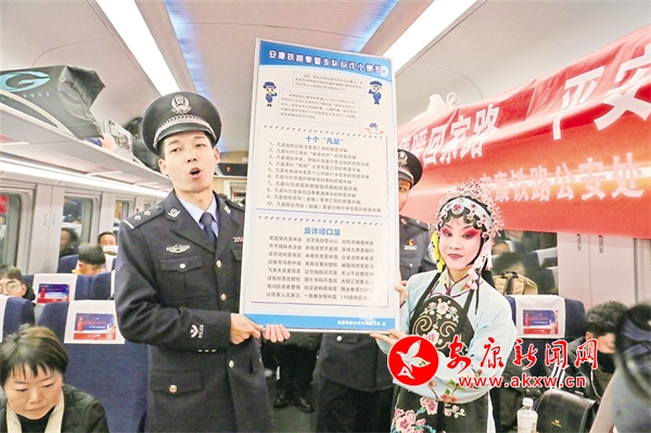 1月14日,由西安開往達(dá)州的D173次列車上,西安鐵路公安局安康公安處聯(lián)合漢濱區(qū)文化館、安康漢調(diào)二黃研究院的文藝工作者,以地方非物質(zhì)文化遺產(chǎn)技藝展示等方式,結(jié)合春運(yùn)開展反詐知識宣講,讓旅客們在春運(yùn)旅途中感受安康地方傳統(tǒng)文化獨(dú)特魅力,提升安全意識。