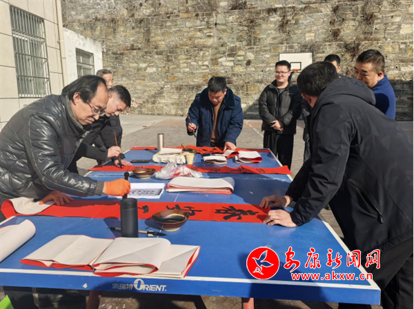 1月20日,旬陽(yáng)市司法局、旬陽(yáng)市文聯(lián)、旬陽(yáng)市書(shū)法協(xié)會(huì)、旬陽(yáng)市楹聯(lián)學(xué)會(huì)組織書(shū)法家,走進(jìn)銅錢(qián)關(guān)鎮(zhèn),為廣大群眾義寫(xiě)蛇年喜慶春聯(lián),獻(xiàn)上新春祝福?;顒?dòng)現(xiàn)場(chǎng),書(shū)案一字排開(kāi),書(shū)法家們揮毫潑墨,以“?!弊钟麻_(kāi)筆,行、隸、楷等多種筆體各顯神韻。此次活動(dòng)義寫(xiě)春聯(lián)及福字500余幅,為現(xiàn)場(chǎng)群眾送去一份別有新意的新春禮物和美好祝愿。(通訊員 石佩)?