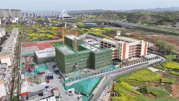 近日,漢濱區(qū)長春初級中學(xué)項目迎來全面封頂。該校占地65畝,共設(shè)置有36個教學(xué)班,配套有標準化操場、圖書館、實驗樓等設(shè)施,有效解決了長春片區(qū)小學(xué)對口直升初中需求。據(jù)了解,該項目由陜建十二建集團承建,嚴格按照市、區(qū)兩級政府總體任務(wù)要求,綜合考慮人力、物力、天氣等因素統(tǒng)籌推進。下一步,將推進主體二次結(jié)構(gòu)及裝飾裝修工程,確保9月開學(xué)季投入使用。(譚鑫 薛鐲 攝)