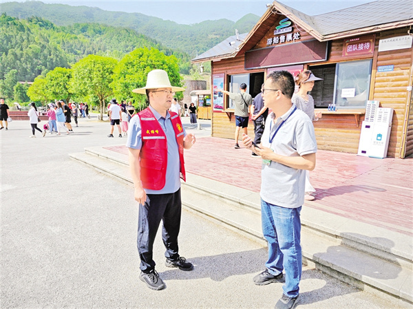 游客需要什么,黨員就做什么!今年“五一”期間,全鎮(zhèn)設立4個固定服務崗、30個流動服務點,配備2支摩托巡邏隊和200名志愿者,形成“點線面”結合的服務網(wǎng)絡。同時運用“智慧監(jiān)管云平臺”,整合無人機巡查、AI人流監(jiān)測等技術手段,實現(xiàn)景區(qū)客流精準調控,贏得了廣大游客的爭相稱贊。