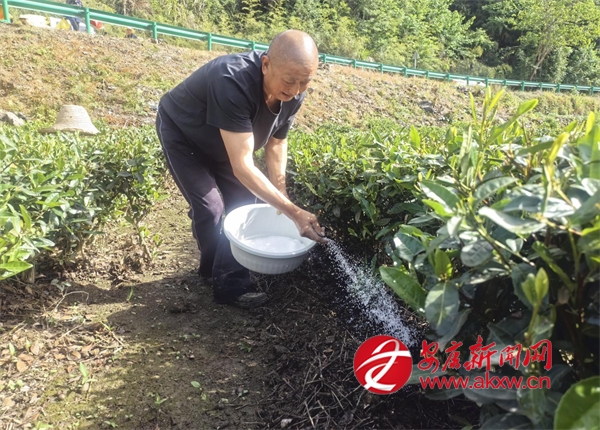 “沒想到政府直接把肥料送到茶園里了,既省時又省力,服務真是太周到了。我的2畝茶園分了70斤肥料,再過一段時間就可以機采夏秋茶了?!辈柁r(nóng)康中強滿臉喜悅地說。說話間,康中強順手將盆里的肥料,撒進挖好的茶壟里。