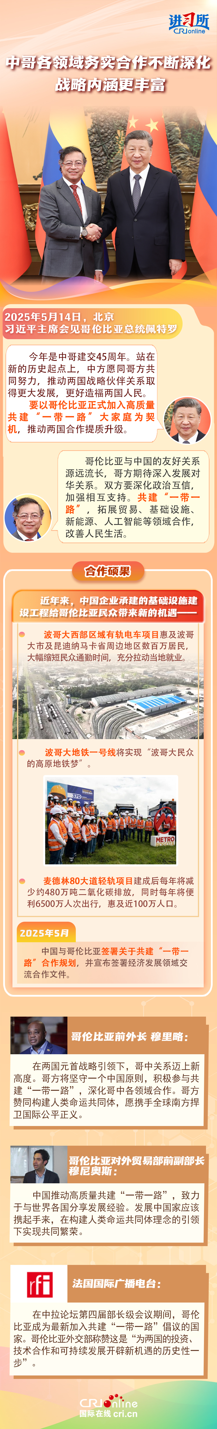 習(xí)近平主席在這三場雙邊外事活動中,均提到了共建“一帶一路”倡議:“深化‘一帶一路’倡議同巴西發(fā)展戰(zhàn)略有效對接”“要以哥倫比亞正式加入高質(zhì)量共建‘一帶一路’大家庭為契機(jī),推動兩國合作提質(zhì)升級”“雙方要落實(shí)好共建‘一帶一路’合作規(guī)劃”……10多年來,在習(xí)近平主席親自擘畫和推動下,共建“一帶一路”從中國倡議走向國際實(shí)踐,取得了實(shí)打?qū)?、沉甸甸的成就?/p>
