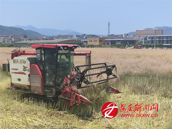 5月19日,石泉縣池河鎮(zhèn)五愛(ài)村油菜種植基地里,大型聯(lián)合收割機(jī)正進(jìn)行采收作業(yè)。池河鎮(zhèn)今年種植油菜8600畝,已全部成熟并有序組織搶收。當(dāng)?shù)卮罅ν茝V機(jī)械化作業(yè),既提升采收效率,又能實(shí)現(xiàn)秸稈還田,有效解決焚燒秸稈問(wèn)題。(通訊員 王朋)?