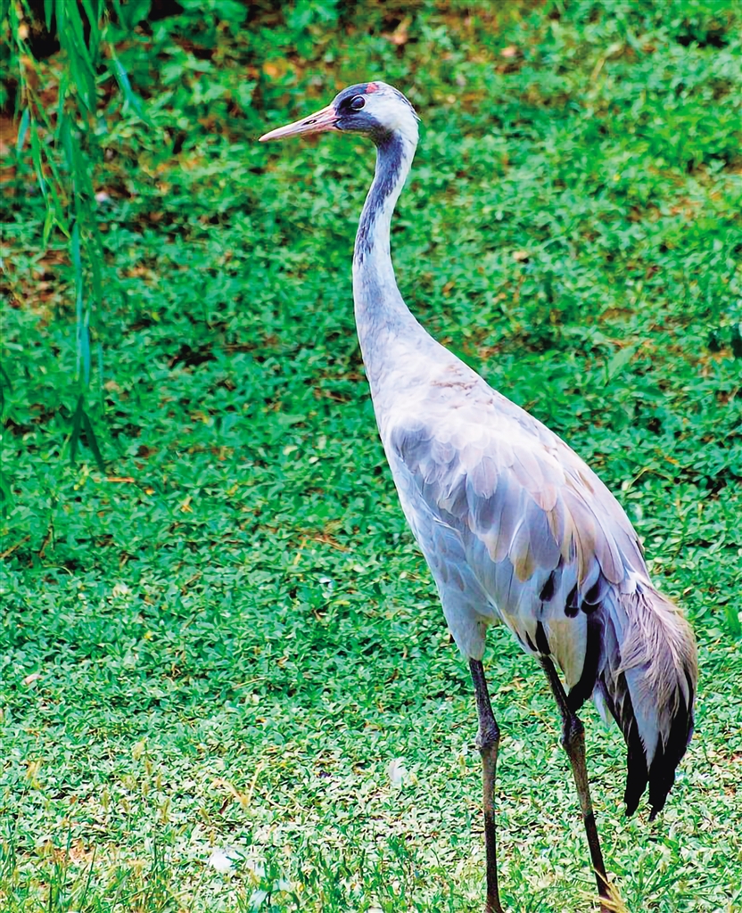 別名千歲鶴、玄鶴、番薯鶴、普通鶴、元鶴。通體羽色幾乎全為灰色;前額和眼先黑色,頭頂裸區(qū)部分呈朱紅色,喉、前頸和后頸灰黑色;自眼后有一道寬的白色條紋伸至頸背;眼虹膜紅褐色或深紅色;嘴暗綠色,先端顏色略淡;脛、跗跖及趾均為灰黑色。(來源:安康市林學(xué)會)