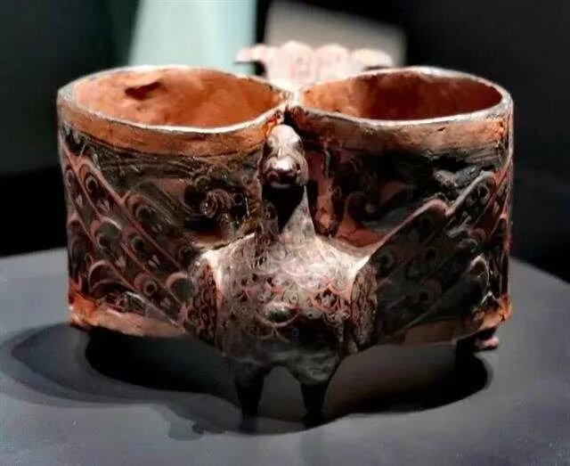 戰(zhàn)國(guó)彩繪漆木鳳鳥(niǎo)雙聯(lián)杯