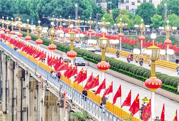 9月25日,我市市政部門對(duì)漢江一橋進(jìn)行了裝扮,以迎接即將到來的國(guó)慶節(jié)。?陳德模 攝