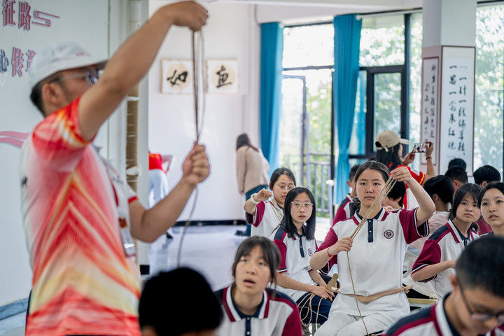 ? 2025年5月12日,云南省昭通市威信縣第一中學(xué)學(xué)生在大屏上紅色研學(xué)實(shí)踐基地體驗(yàn)編織草鞋。200余名學(xué)生在紅色研學(xué)實(shí)踐基地親手編織草鞋、制作蠟染,并參觀了扎西會(huì)議舊址、紅軍長(zhǎng)征過(guò)云南情景體驗(yàn)館,在實(shí)踐互動(dòng)中重溫紅色革命歷史。威信縣立足紅色文化資源優(yōu)勢(shì),先后建成扎西會(huì)議紀(jì)念館、紅軍長(zhǎng)征標(biāo)語(yǔ)館等紅色文化展館,以舊址遺跡為“教室”,以文物史料為“教材”,設(shè)計(jì)開(kāi)發(fā)多門(mén)精品研學(xué)課程和線(xiàn)路,在深入開(kāi)展紅色研學(xué)系列活動(dòng)中傳承紅色基因。