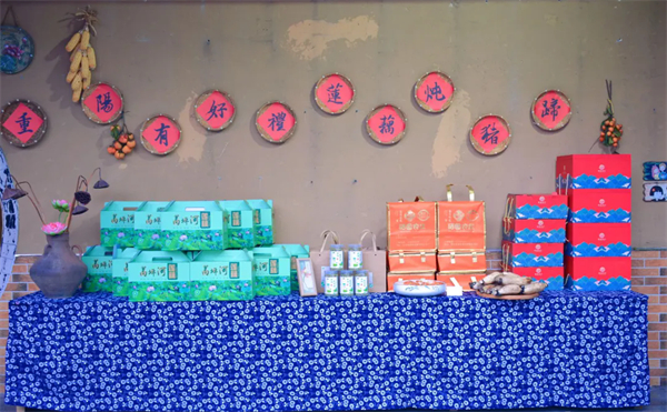 此外,活動(dòng)現(xiàn)場精心打造了“重陽有好禮,蓮藕燉豬蹄”網(wǎng)紅墻,成為參會(huì)人員打卡留戀的熱門地點(diǎn);同時(shí),設(shè)置了農(nóng)副產(chǎn)品展銷區(qū),集中呈現(xiàn)紫陽蒸盆子、蒿坪河蓮藕、紫陽荷葉茶、蓮藕燉豬蹄等特色農(nóng)副產(chǎn)品。值得關(guān)注的是,硒園農(nóng)莊此次首次推出“蒿坪河蓮藕燉豬蹄”伴手禮盒,分為“四至五人份”和“八至十人份”兩種規(guī)格,于重陽節(jié)前夕上市。該禮盒將堂食菜品轉(zhuǎn)化為便攜商品,為當(dāng)?shù)厣徟轰N售拓展了新渠道,也為蓮藕產(chǎn)業(yè)鏈延伸做了初步嘗試。