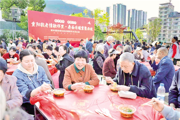 10月28日,嵐皋縣城關(guān)鎮(zhèn)西坡社區(qū)舉辦了“重陽(yáng)敬老情融鄰里·壽面?zhèn)髋缇畚髌隆敝黝}活動(dòng)。廖霖 攝