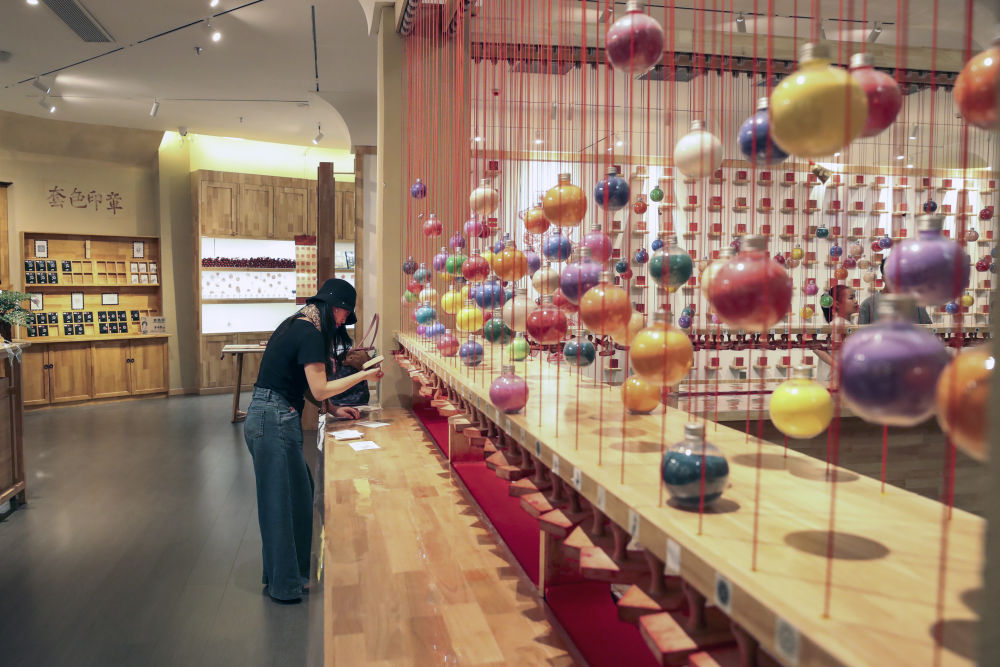 ??2025年5月10日,游客在敦煌文旅新打卡地敦煌印局體驗文創(chuàng)印章。