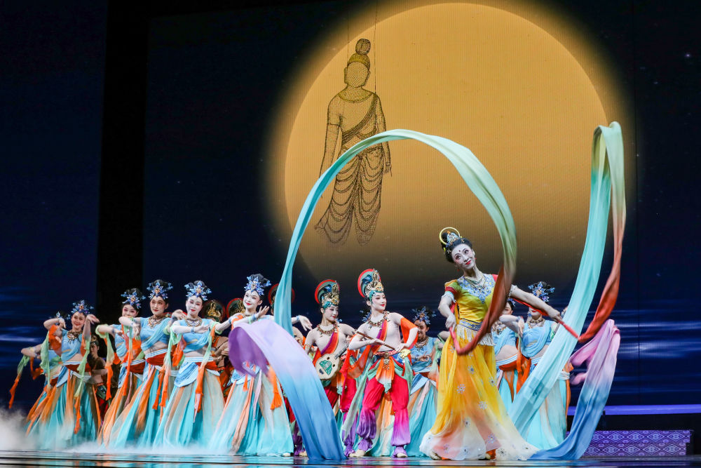 ??2025年9月22日,在敦煌舉辦的“相約敦煌”國際文化交流演出活動上,甘肅省演藝集團的演員展演《樂動敦煌》選段。《樂動敦煌》借助對莫高窟壁畫、藏經(jīng)洞古籍的解讀梳理,活化敦煌古樂器、古樂譜研發(fā)成果,通過全息投影等手段,結合專業(yè)演員的表演,將莫高窟壁畫中的樂舞盛景生動再現(xiàn),讓觀眾沉浸式感悟傳承千年的敦煌樂舞文化魅力。