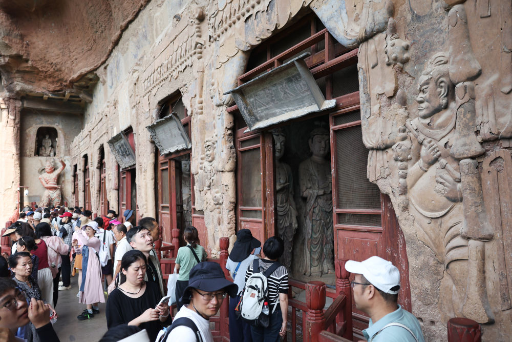 ??2025年7月16日,游客在麥積山石窟參觀。