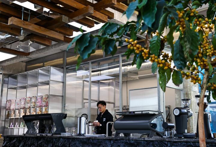 2025年12月10日,旅居云南的韓君瑋在位于昆明的南來盛咖啡店內制作咖啡。韓君瑋自清華大學畢業(yè)后,已在咖啡行業(yè)耕耘十余年。2024年,他受聘成為云南一家老字號咖啡品牌的品牌總顧問,從此投身到云南咖啡的產品研發(fā)和品牌推廣工作中。一年多來,他每月都會來到昆明,短則幾天,長則數(shù)周,開啟了一種“半旅居、半工作”的生活模式?!霸颇巷L景優(yōu)美、氣候宜人,我很享受這樣的狀態(tài)?!表n君瑋說。