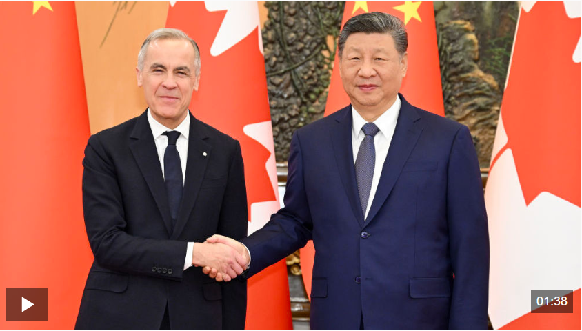 1月16日上午,國家主席習(xí)近平在北京人民大會(huì)堂會(huì)見來華進(jìn)行正式訪問的加拿大總理卡尼。