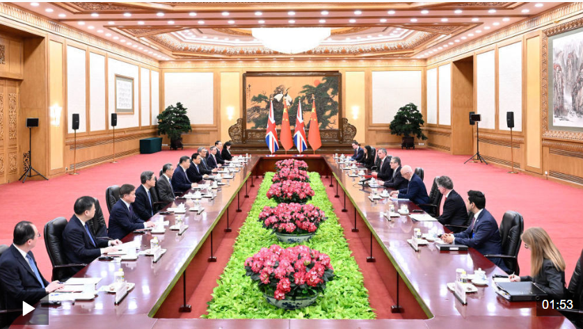 斯塔默說:“尊敬的習(xí)主席,如您所說,這是8年以來英國首相的首次訪華,在我看來這時(shí)間太長了。我非常高興的是,此次與我隨行的代表團(tuán)陣容非常強(qiáng)大,包括約60位重要企業(yè)和文化界代表。他們和我一樣,都期盼能在中國成長和拓展業(yè)務(wù)。我一向都說得很清楚,英中兩國需要一個(gè)長期穩(wěn)定的全面戰(zhàn)略伙伴關(guān)系。中國在國際舞臺上發(fā)揮重要作用,英中兩國建立更高水平的雙邊關(guān)系至關(guān)重要?!?/p>
