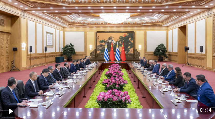奧爾西說:“尊敬的習近平主席閣下,烏拉圭高度重視此次對華國事訪問,這也體現(xiàn)在我們派出了很高級別的代表團。今天恰逢兩國建交38周年,兩國的全面戰(zhàn)略伙伴關系正處于歷史最好時期。烏方有意進一步深化雙方在各領域的合作。”