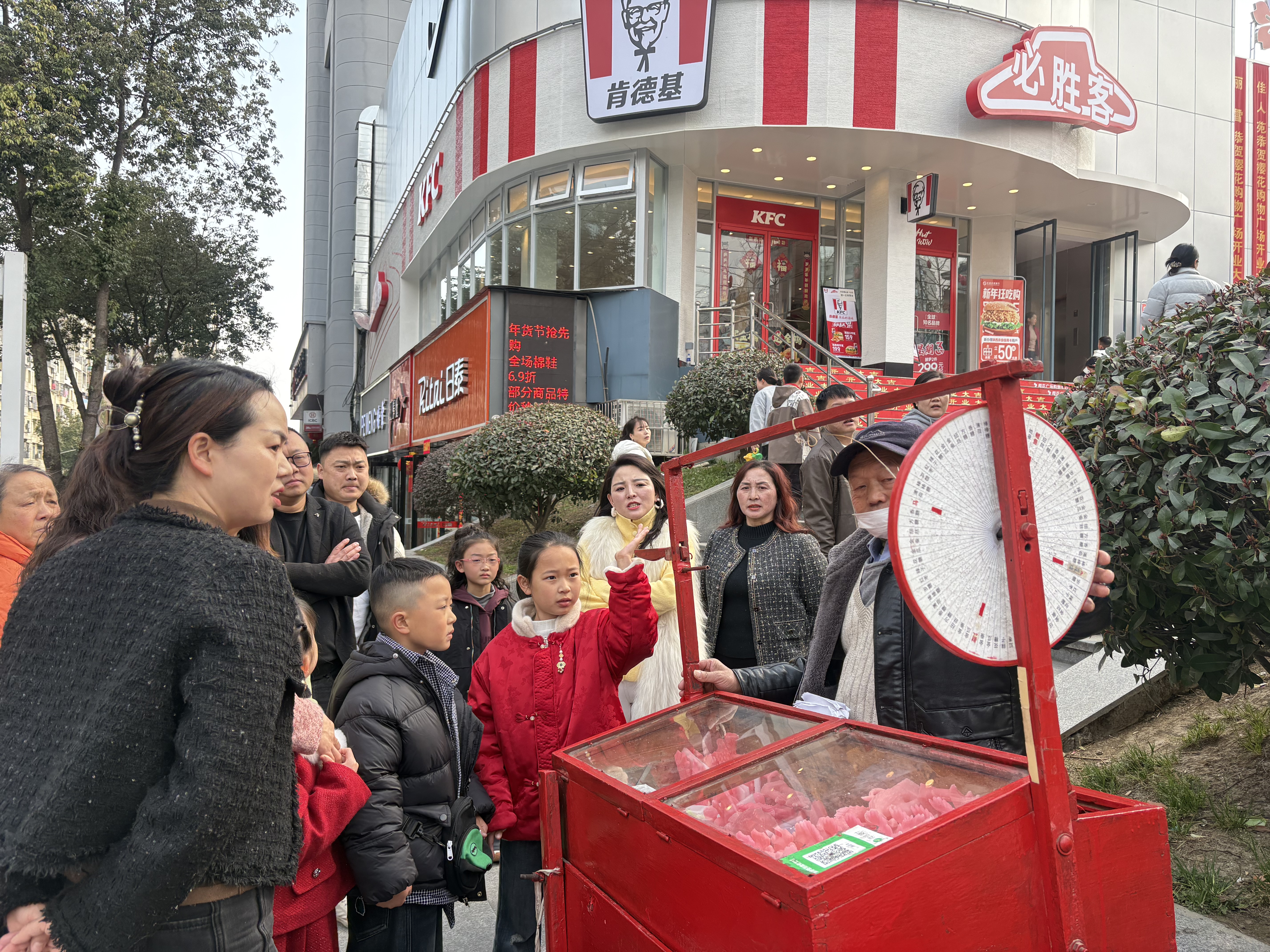 2月17日,石泉縣櫻花廣場,市民體驗傳統(tǒng)打彩游戲。劉丹 攝