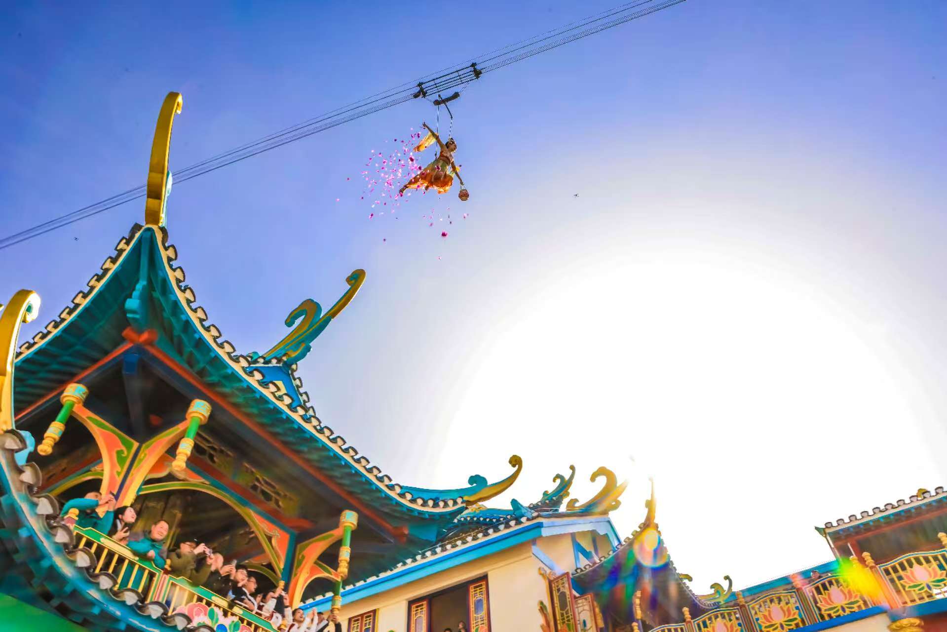 春節(jié)期間,瀛湖漢水街文旅影視基地熱鬧非凡。圖為游客們欣賞基地精心準備的表演。張忠 攝