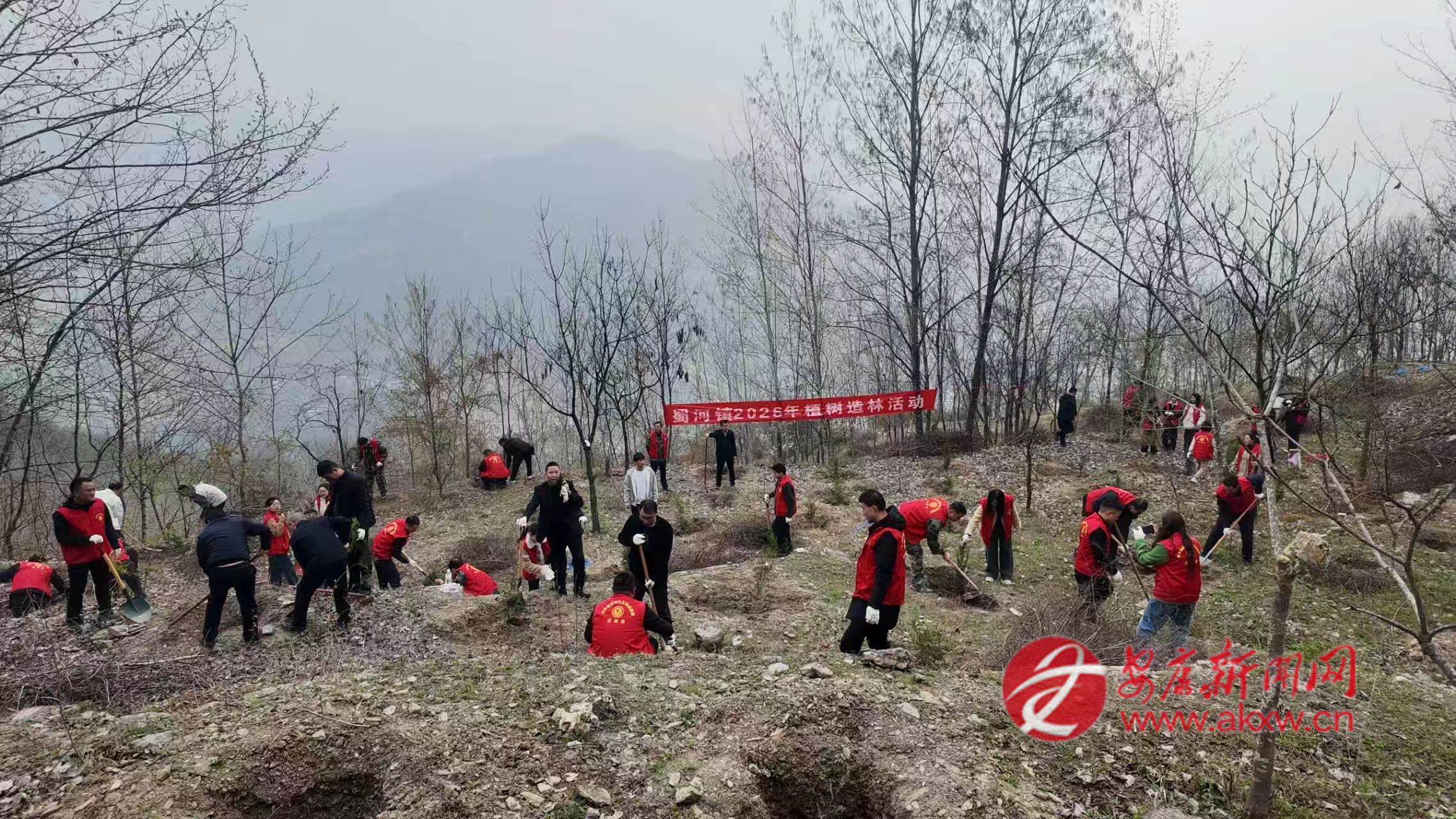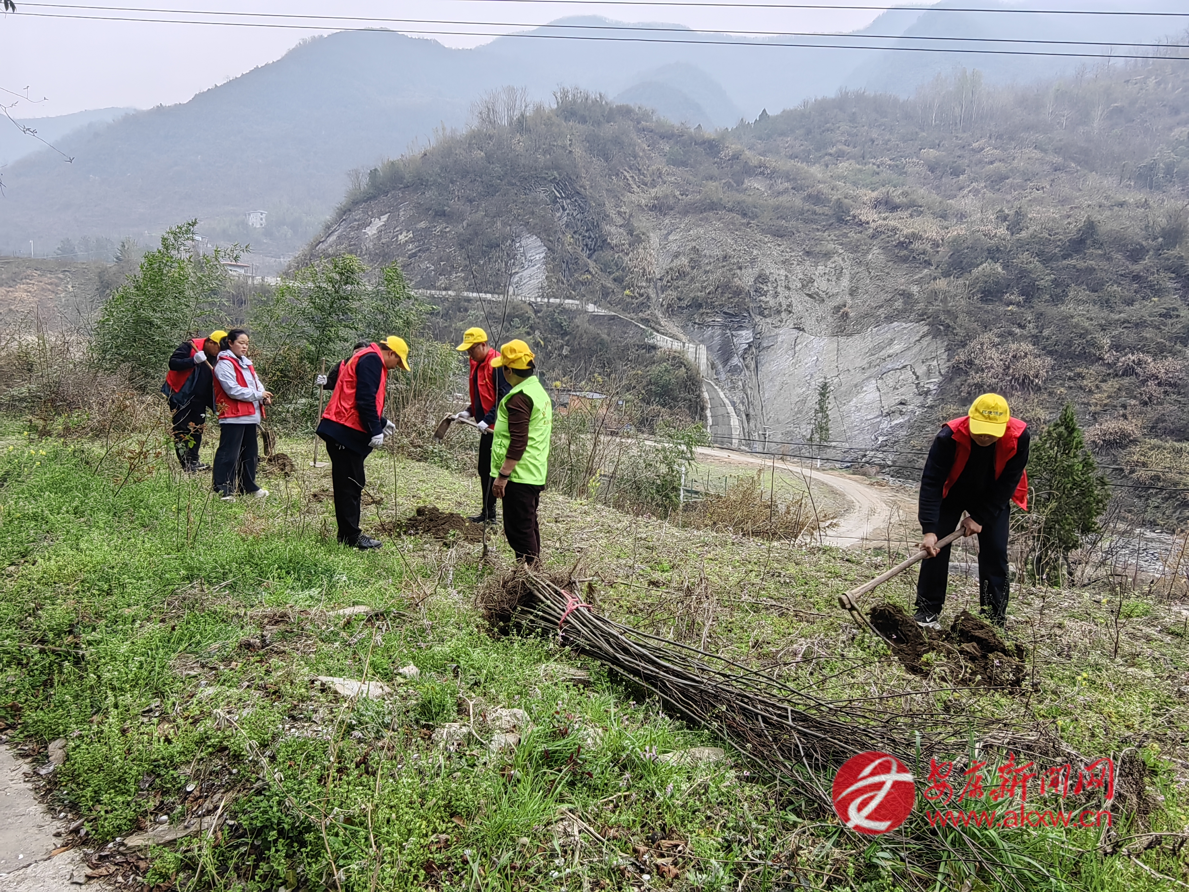 石門鎮(zhèn)組織鎮(zhèn)村干部、志愿者在樓房河村開展春季義務(wù)植樹活動