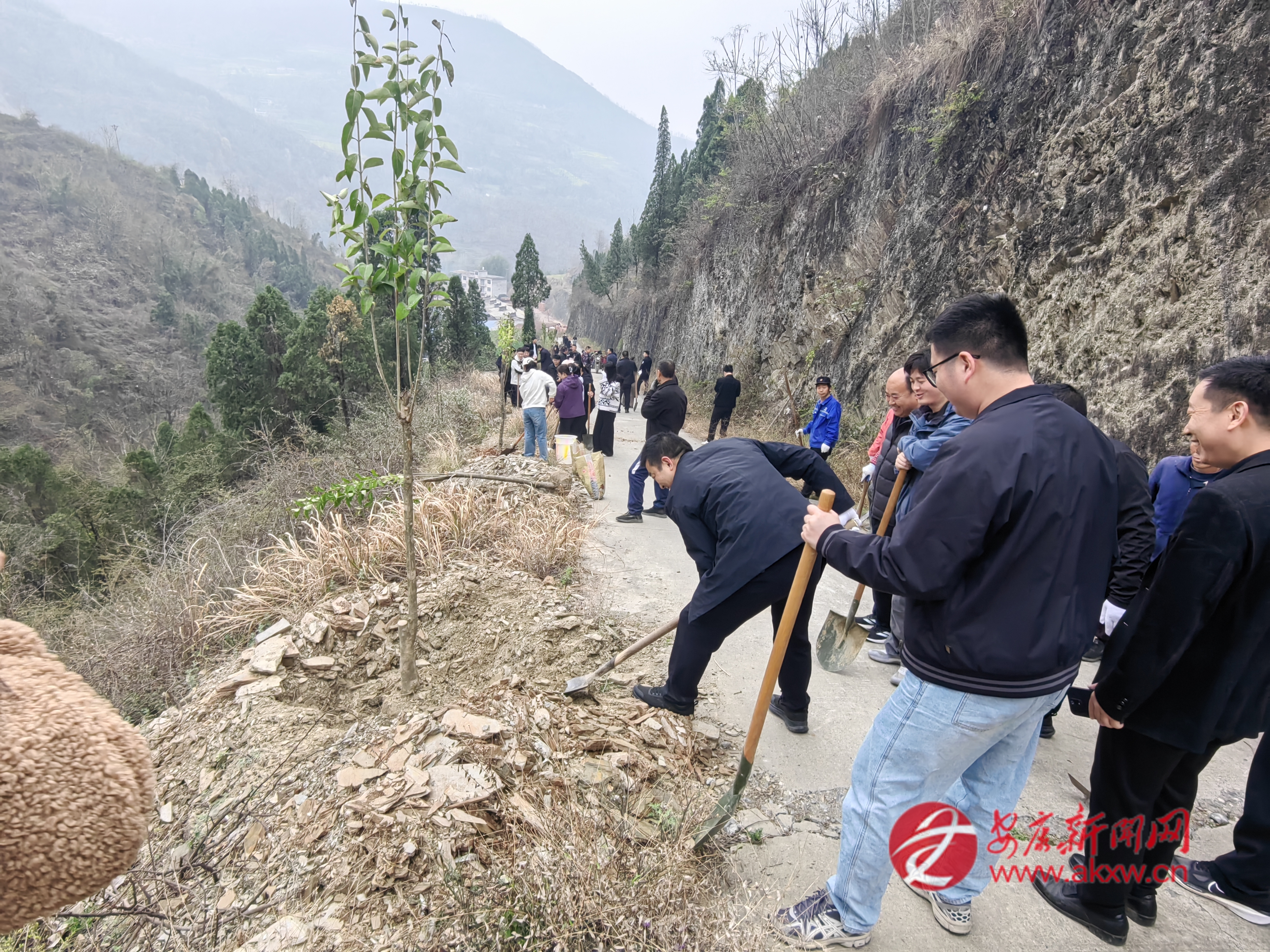 紅軍鎮(zhèn)組織機(jī)關(guān)干部、豐積社區(qū)黨員干部及群眾代表在李家院子開展義務(wù)植樹活動