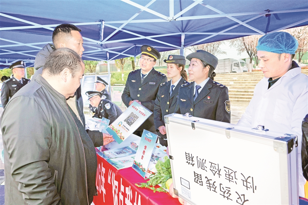 3月14日,在2026年陜西省“3·15”國際消費者權益日主題活動暨安康市“3·15”集中宣傳活動中,市場監(jiān)管執(zhí)法人員正在宣傳講解農(nóng)殘監(jiān)測。