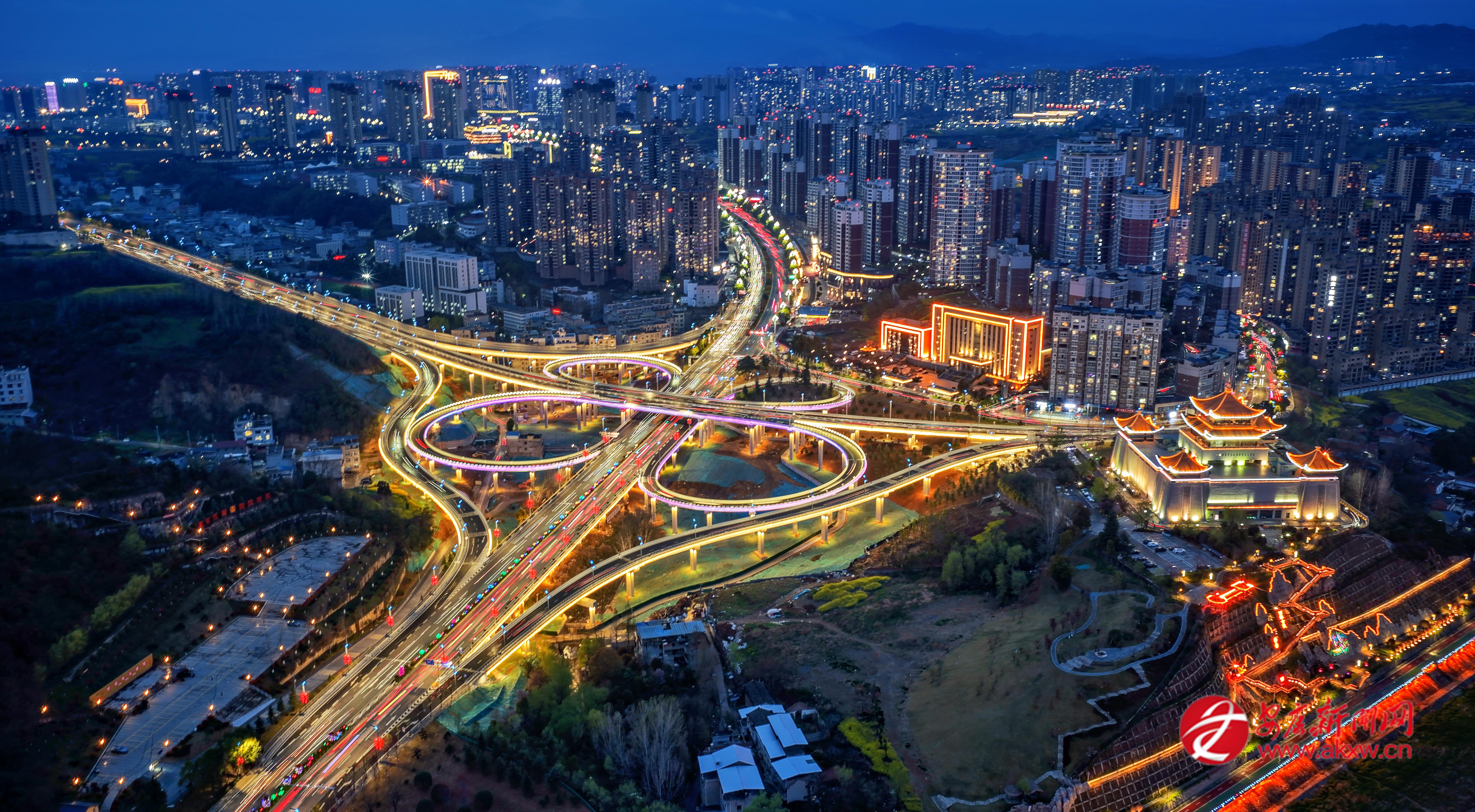 3月15日,七里溝立交如金色紐帶裝點(diǎn)在漢江之畔,與萬家燈火交相輝映,展現(xiàn)出陜南小城春夜里特有的璀璨與活力。皮勇維 攝