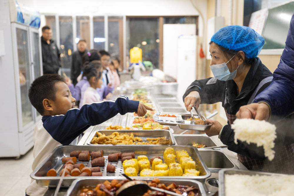 2025年11月25日,放學(xué)的小朋友在雄安新區(qū)容東片區(qū)春明北社區(qū)食堂內(nèi)用餐。春明北社區(qū)食堂每天傍晚為周邊學(xué)生提供營養(yǎng)實惠的晚餐,有效減輕雙職工家庭負(fù)擔(dān)。