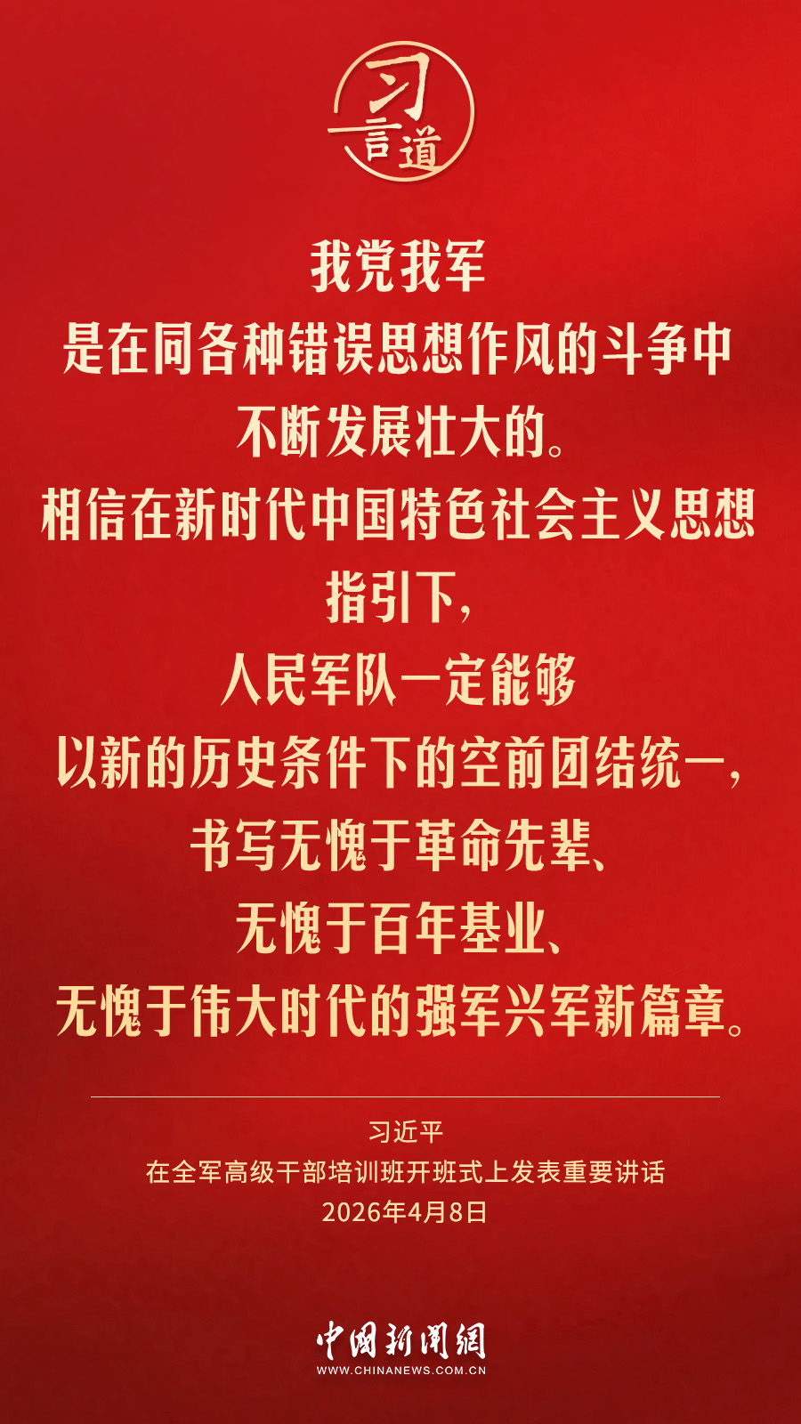 全軍高級干部培訓(xùn)班8日在國防大學(xué)開班。中共中央總書記、國家主席、中央軍委主席習(xí)近平出席開班式并發(fā)表重要講話。他強調(diào)——