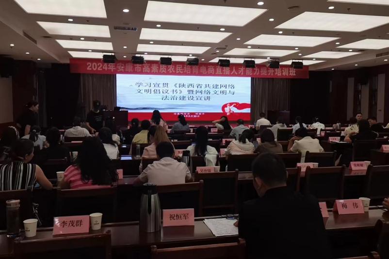 ? ? ? 5月28日,安康市高素質(zhì)農(nóng)民培育電商直播人才能力提升培訓(xùn)班如期開班,市委網(wǎng)信辦參加活動并就“踐行網(wǎng)絡(luò)文明 弘揚(yáng)網(wǎng)絡(luò)誠信”做專題宣講培訓(xùn)。
